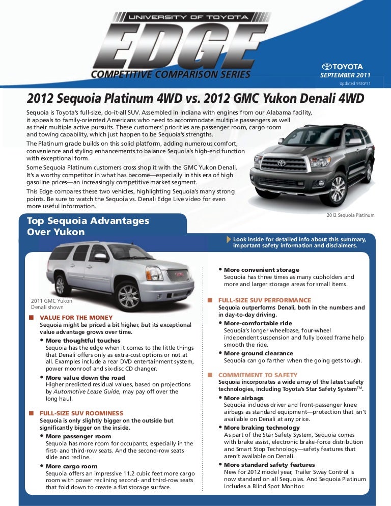 Comfort rear passengers will be able to stretch out a lot more in the gmc yukon than in the toyota sequoia.
